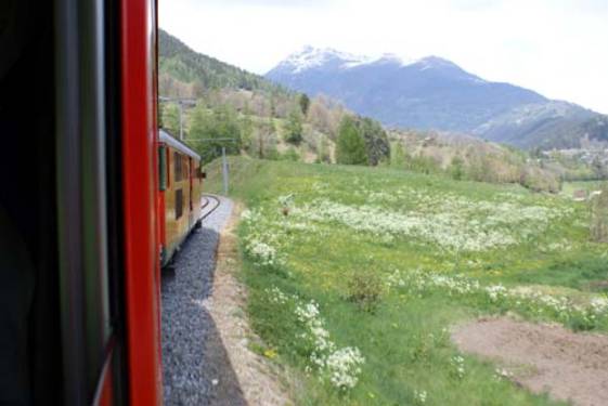 herrlichen Zugfahrt zu Anfang schwärmte. Es war die Strecke von Goppenstein bis