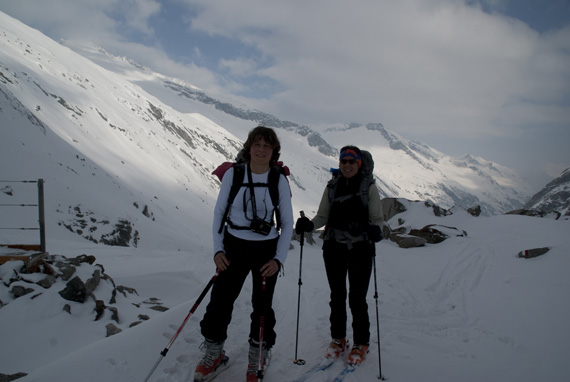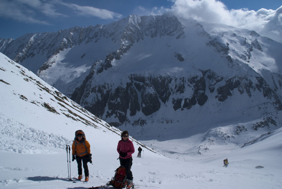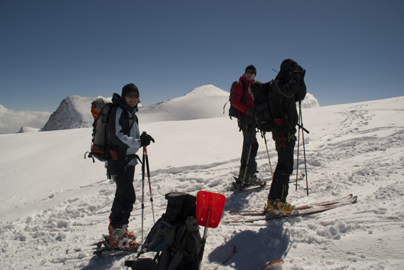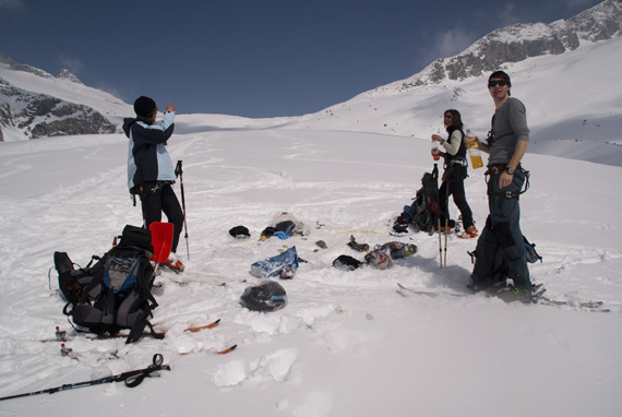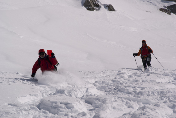 Die Abfahrt ist ganz gut, der Schnee passt, die Rucksäcke sind leer.